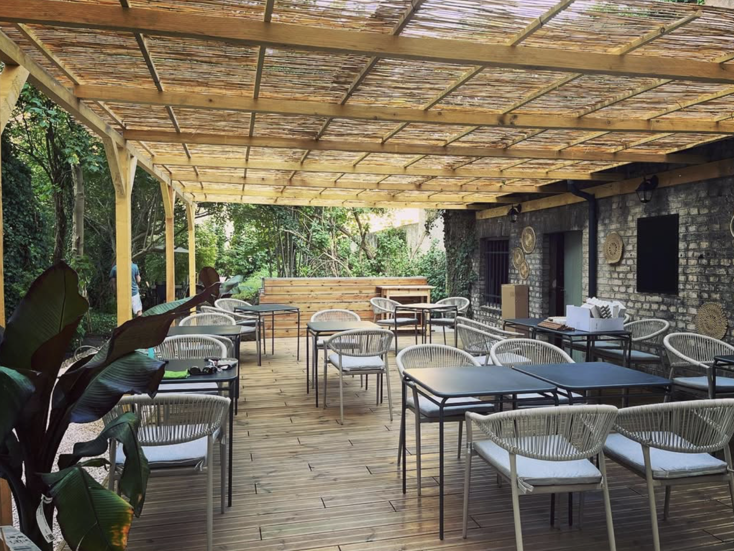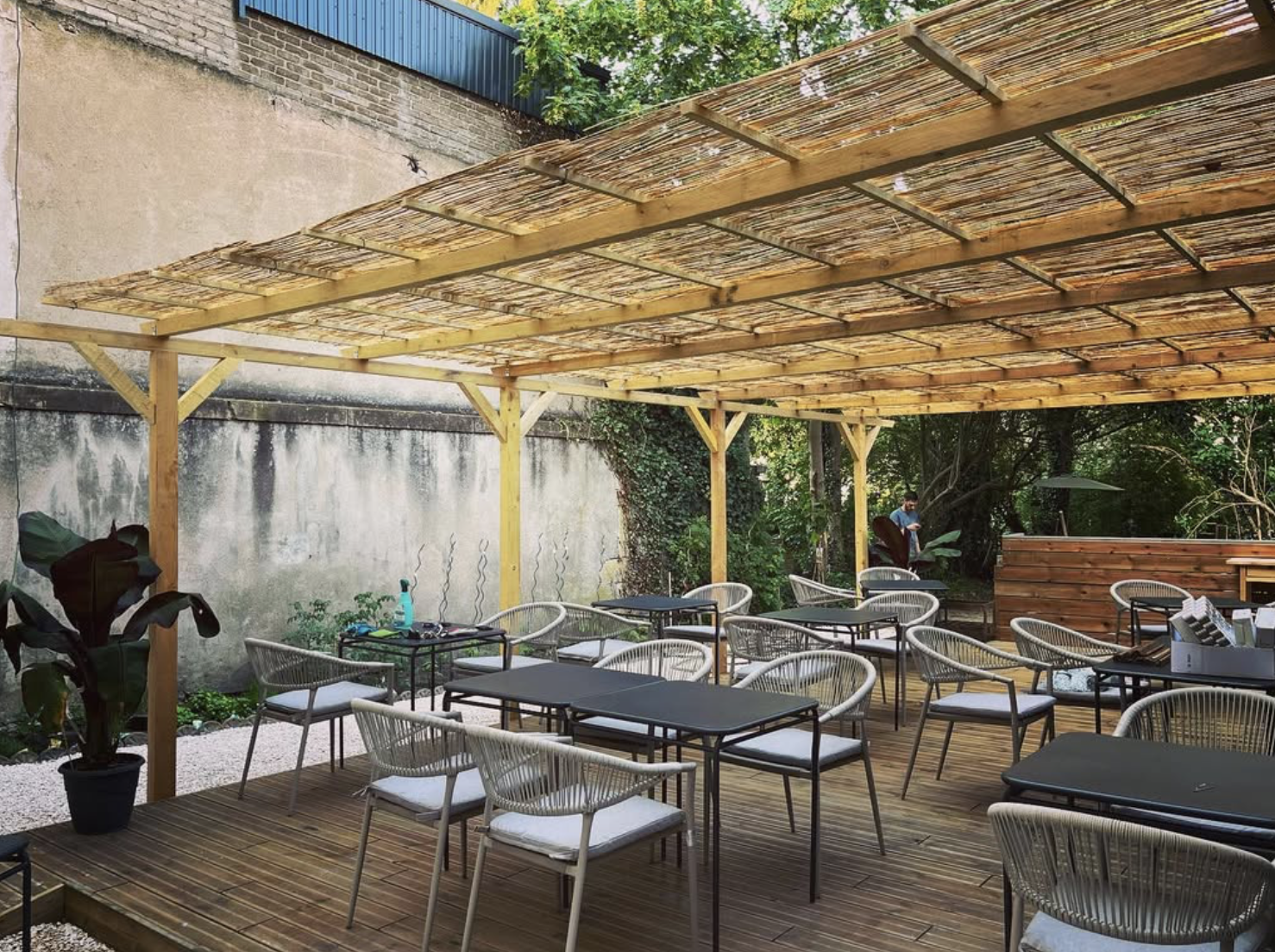 À l’intérieur, une trentaine de couverts ; autant en extérieur dès que la saison le permet. L’ensemble reste à taille humaine, avec une atmosphère vivante mais accessible, pensée pour accueillir aussi bien les déjeuners de semaine que les repas plus animés.